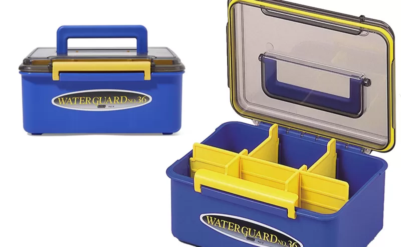 The tools and a variety of accessories that you entrust to it will stay completely dry, thanks to the quality seal on the edges of the lid and tight closure with a sturdy, yellow-contrasting clasp. The blue color of the case is easily detectable and at the same time the transparent cover with a pleasant smoky effect offers excellent visibility to the interior. One look is enough to orient yourself, and one movement of the hand is enough to open the box. The robust, retractable carrying handle and stylish, recognizable design are a great addition to the quality Japanese workmanship of the Meiho Water Guard 36, which will last you a long time, even with active sea fishing and exposure to salt water.