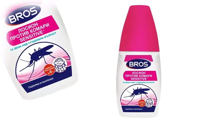 Bros Sensitive Mosquito Lotion is suitable for children over the age of 1, is safe for both skin and natural tissues, but it is not desirable to get directly on synthetic and leather materials, as well as on plastic, lacquered and painted surfaces, including watches. Against ticks it is applied on the ankles and the skin around the legs, cuffs and collar to prevent them from getting under the clothes. It is recommended that after the child is no longer exposed to mosquitoes and ticks, wash the treated areas with soap and water.