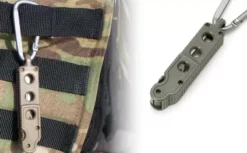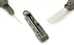 A functional fishing tool that assembles a fiber untwisting awl plus a hook sharpener. The Daiichi Seiko Japanese Omatsuri Sharpener is only 8 cm long and weighs only 18 grams, but the more compact and light it is, the more useful it is to have it on hand at the pond. The two working tips fit comfortably in the sturdy housing, whose openings and curly edges ensure a secure grip at any angle. Despite the pocket size of the folding tool, thanks to the carabiner and the ability to hang a garment, belt or bag on the outside, you can also secure yourself with quick access.