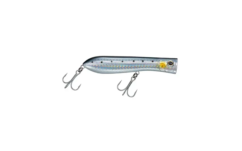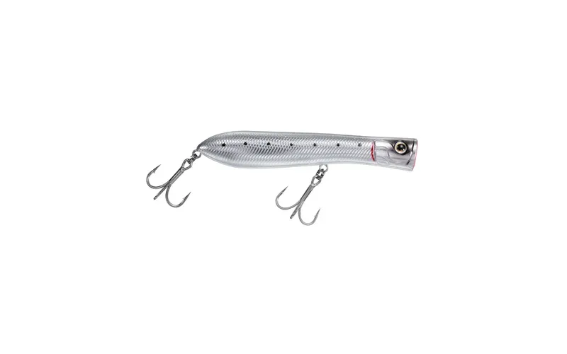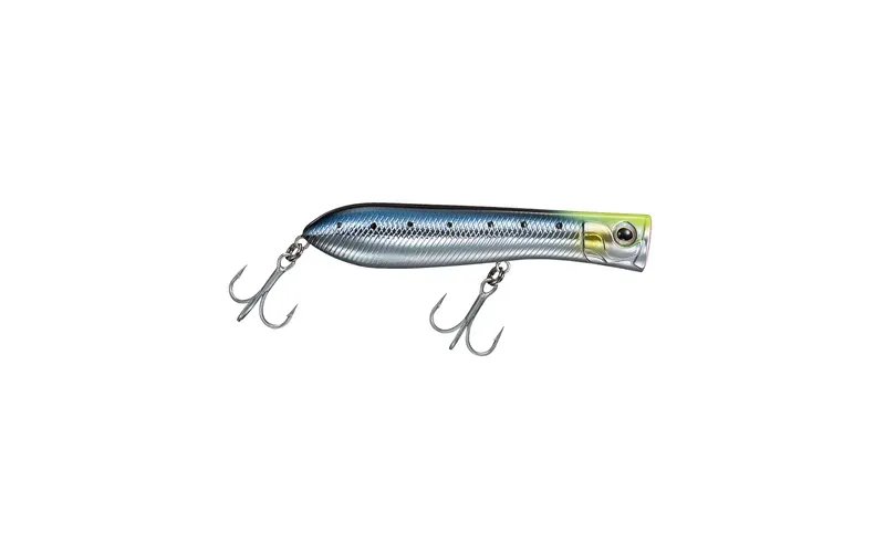 Frighteningly effective popper for marine predators such as sea bass, bluefish, horse mackerel, dorado and many other favorite fighting fish that are easily fooled by its attractive presence in the water. The Daiwa Salty Pop flies impressively far, thanks to the combination of a thin body with a rear fixed center of gravity and a corresponding thickening towards the tail. You can easily achieve longer casting distances than usual with a similar surface lure, which means a larger catch area and in many cases, hitting right on the trollers fishes.