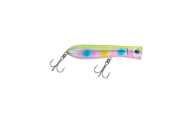 With its precise balance and synergistic design effect, Daiwa’s resulting popper maintains a stable position and flight direction even in strong crosswinds. It is also capable of attractive single jumps on the surface, accompanied by the familiar “Pop” sound of the cup mouth when you pull it with a short movement and the rod raised, it is also a “master” of the zig-zag movement in the Walk-the-Dog technique and with faster retrieve it moves with distinct jumps on the surface. Sturdy, with detailed relief, striking eyes and vibrant colors, Salty Pop wobblers have everything for a memorable action, including on apathetic fish.