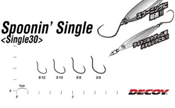 Decoy ‘s Spoonin’ Single 30 series is designed specifically for lures and trout fishing with a shape and characteristics ideal for lures weighing between 1 and 7 grams. An excellent option for replacing the treble hooks in models equipped with them, including small jigs when catching small fish in salt water.