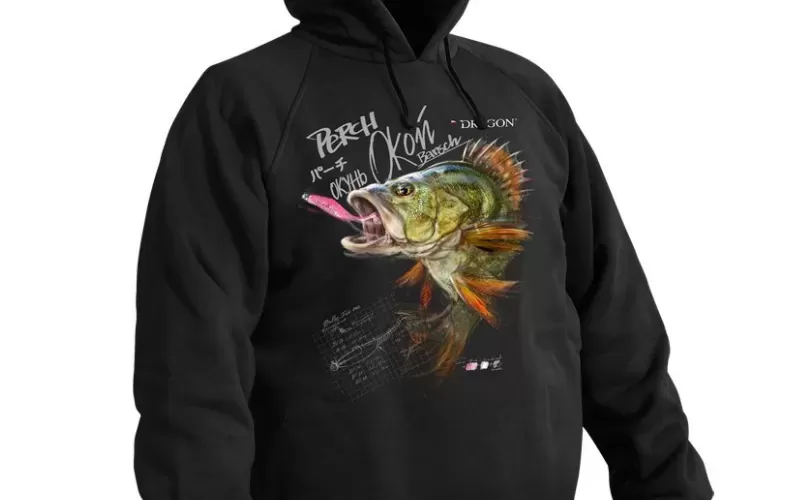 “Dragon Perch Hoody is a great proposal for a sweatshirt to wear not only as a second layer under the jacket in winter, but also as an outerwear in the transition seasons. The design with raglan sleeves and the free cut plus the elastic cuffs on the sleeves and the elastic at the lower end provide all-day comfort. Side pockets are provided to keep your hands warm, and the black and detailed perch give it more style and make it suitable for carrying not only on the pond.