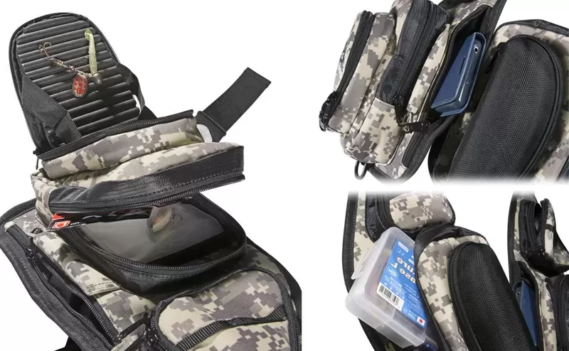On the subject of organization, the pockets have a bunch of options, including storing boxes of baits or arranging them on the microporous rubber insert in one of the two larger ones, where a set is waiting for you. of 5 replaceable plastic bags with velcro fixing to store wet baits and protect other things or clothes from moisture. You also have a hard case for glasses, a few smaller pockets with zippers for phone and other things, as well as nuts with carabiners for attaching keys, tools and whatever else you can think of.