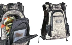 The two largest front pockets are adapted to carry boxes, spools and other bulky items, one combined with a hard eyeglass case on the outside and the other with microporous rubber pad for direct alignment of lures. Around them you have the opportunity to attach tools and other accessories, there is even a large nut for attaching a fishing rod. In addition to mesh side pockets for boxes, drinks or gloves, the backpack can store safely keys, documents, light clothing or raincoat, and the straps with buckles in its upper part are adjusted to the needs of a jacket, blanket, camera tripod or whatever set with the right shape and volume.