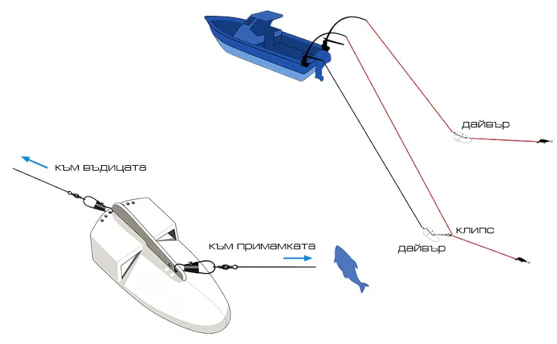 A very easy to use diver that will immerse your lures between 3 and 5 meters below the surface and keep them there. The front of the Dragon U-Boat has a whole set of holes and you can choose who to attach the line coming from the rod, thus adjusting the direction of deviation from the boat.