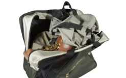 A special model bag for boots and overalls, in which their storage, especially after the end of fishing, saves some of the most annoying worries on the subject. The two compartments of Dragon 96-20-001 have different uses and separate two-way zippers to keep them insulated from each other. One is with a mesh part through which to evaporate moisture from the overalls or other garment with the appropriate volume, eliminating the chance of retaining unpleasant odors. The second has two vents in the lower part, designed to drain the water trapped on the shoes or boots.