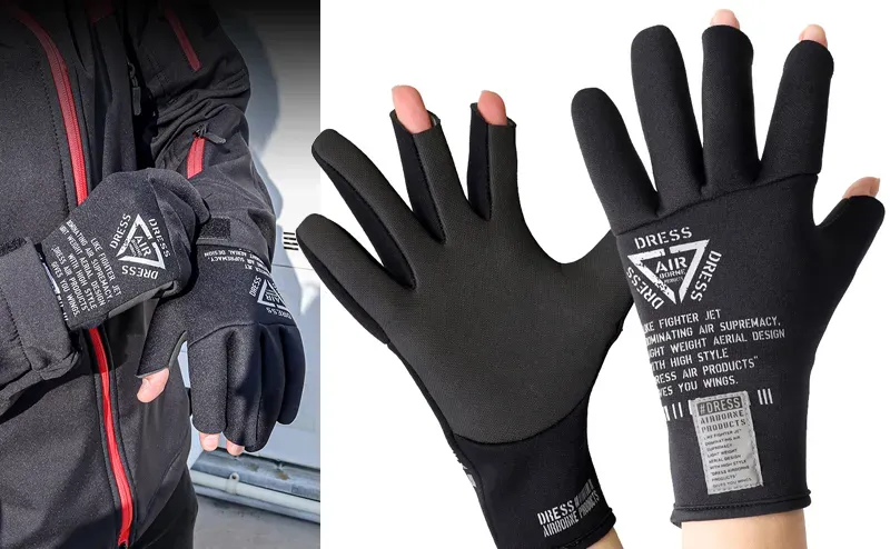 Chloroprene fishing gloves made with DRESS quality – waterproof and windproof able to retain heat much more than neoprene models! 3 Fingerless gloves, such as the Chloroprene Gloves series, have “cut off” fingers for maximum comfort when handling the cutlery and also the phone without having to take them off them