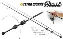 - The most versatile rod among all the Tetra Works React offerings is the React 65 The Versatile Model. It weighs 44 grams, the length is 198 cm, you can handle jig heads and silicones with a total weight of 5 grams, also small wobblers jigs in the specified working range. Here too, 24T high modulus carbon for the 330mm top is combined with 40T carbon for the rest, but the blank behavior is different, so it can also be used for Micro Bombard or Caro mounts montages. If you’re looking for a high-end versatile Light Rock Fishing (LRF) rod, this is the one for you!