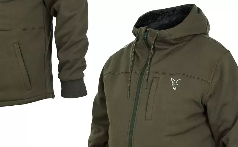 One chest pocket plus two for the arms are waiting for you, all with zippers, elastic cuffs, elastic cords to adjust the circumference at the bottom, as well as ties to fasten the warm hood. The pleasant olive color is varied only with two small silver Fox logos for accent, so it fits easily with the rest of the equipment. The lining of the sweatshirt from the Green Silver Sherpa Hoodie collection is 100% polyester, and the outer fabric has a density of 290gsm and a composition with a distribution of 80% cotton and 20% polyester.