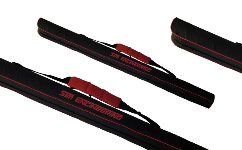 Hard Rod Case SIM 853445 rod cases are made of the extremely durable 600D Nylon and lined with PVC on the inside, so the protection for the tackle is more than reliable. The model features an adjustable shoulder strap with a soft insert plus a short handle and opens with a full-length zip. The width is 17 cm and the red edging, logo and insert emphasize the clean design without being too intrusive.