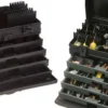 When opened, the compartments stand fan-shaped in height and are located opposite each other, displaying everything that is arranged in the suitcase and everything is accessible in just one movement. When closed, the shelves fit snugly and prevent accessories from spilling out. The quality of the material is of the highest level, with special cup holders or drink cans on the inside of the lids.