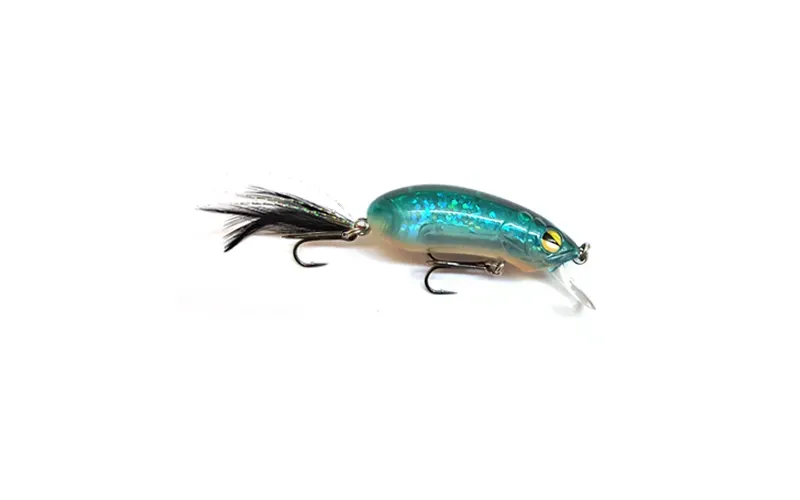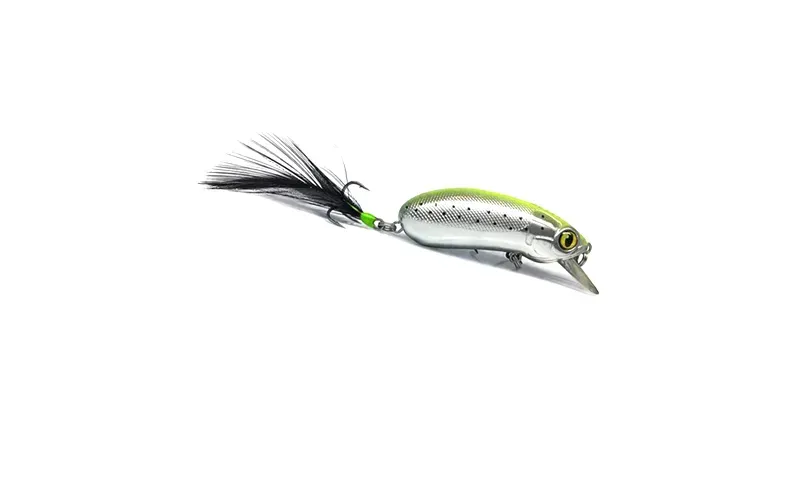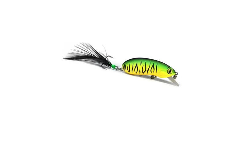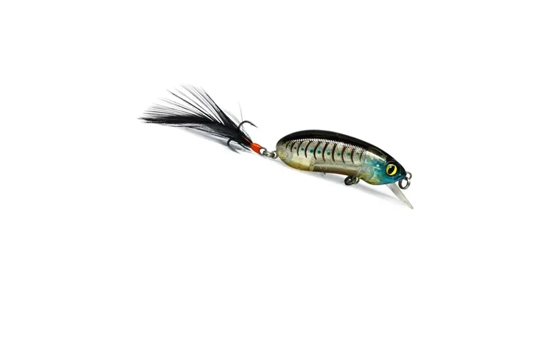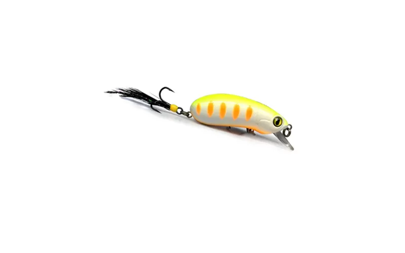 The lure also has a sound camera, thanks to the extra moving weight, and the realistic and lively game comes complete with fast working depth provided by the thin but very strong blade with a patent for the method of installation in the housing. The high frequency vibration of the wobbler puts a new test to the appetite of the fish, and their attacks will be very fierce because of the feather in the back three, which irritates and emphasizes the action of the wobbler. The hybrid design of the lure combines a mino shape with a crank movement, most often resembling a peanut, but more importantly, the vigorous meandering is fact even with slow plucking. The balance is precise and remarkable in each of the varieties, and the long throw, against the background of the size, is also not to be underestimated, whether you are fishing with the floating or slow sinking option.