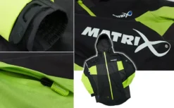 There’s also an adjustable hood, comfortable neoprene cuffs on the inside plus velcro straps for fastening on the outside, an inside zip pocket and the ability to adjust the circumference at the bottom end of the jacket by tightening. The combination of black with neon green and white Matrix logo for accent is especially successful for the series, along with the high level of security for all-day comfort in fishing you take off.