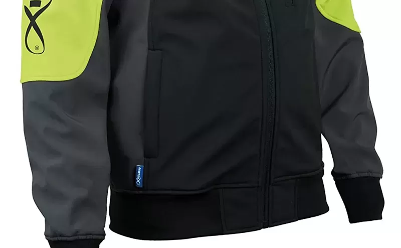 The model has two side pockets with a zipper plus a third on the chest, the hood is tightly fastened with elastic cords, and the main zipper forms a high collar for maximum comfort. The cuffs of the sleeves are extended for more convenience when handling the tools of the pond, they are made of durable and elastic polyester fabric, such as the lower end of the softshell jacket.