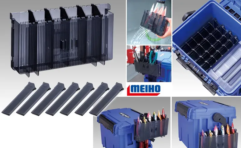 Meiho BM-3020DStocker Attachment is compatible with all models of the brand with side slots, including BM-9000, BM-7000, BM-5000, VS-7080, VS -7080N, VS-7070, VS-7070N, VS-7055, VS-7055N, VW-2070, VW-2055. It can also be fixed to the BM series rod stands if you are already using one and the slots are occupied, this is done very easily via multi holders BM-25 and BM-30, depending on the stand . So you even get even more storage options, and the fixing itself is super quick and easy – with the help of a strong and secure clip on the back. After fishing, the lure and tackle organizer can be stored upright in most company cases, and the drainage holes for each compartment also allow direct saltwater washing of tackle inside.