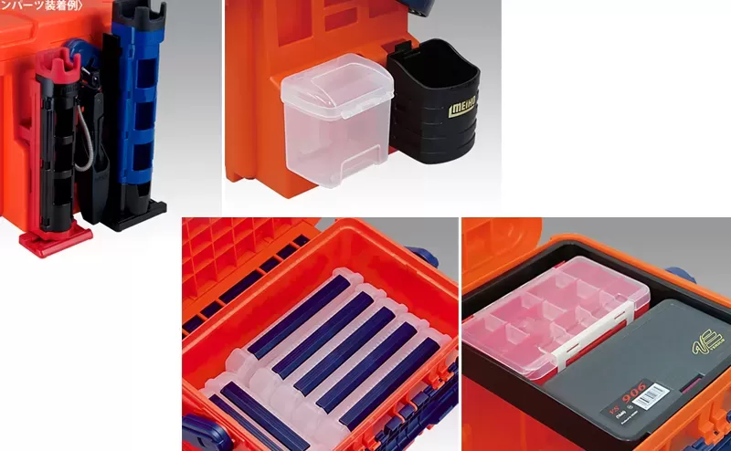 In addition, the volume of 20 liters allows the reorganization of accessories, thanks to the removable partition with several slots and the tray that you can remove freely. On both sides you have holders for additional accessories or company stands, the lid can be removed completely or fixed open at 90 degrees, so the characteristic functionality of Meiho is present. You will also find a comfortable and strong handle, as well as a secure locking mechanism.