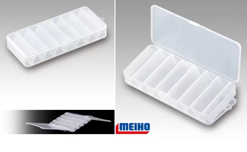 The double-sided box has a total of 14 compartments, 7 on each side, with the two lids opening independently of each other. Practical and robust construction is a fact for even the smallest Meiho boxes, and the material is suitable for storage of silicone lures , so spinning anglers can rely on the model for everything and for a long time to come.