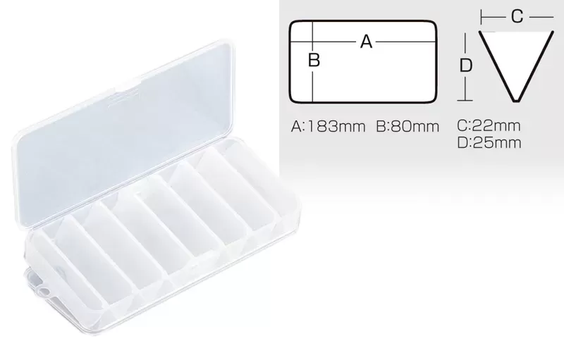 Small box with two sides, ideal for light lures and a great option to hold more bait in a compact size to carry, including in a pocket, bag or backpack. The triangular compartments of the Meiho Reversible 85 Two Sided provide the most useful storage space for lures, wobblers, jigs or silicones up to about 8 cm long, and the fully transparent high-quality polypropylene ensures excellent visibility to the contents.