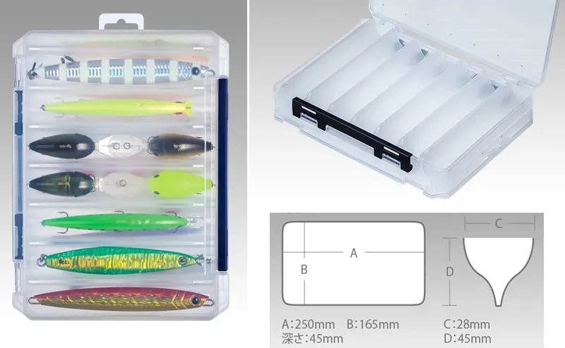 The practical layout with maximum volume absorption comes complete with excellent visibility through the transparent material as well as drainage holes for each compartment individually. This allows after fishing to rinse all lures directly in the box by submerging it in a bowl of clean water or placing directly under running water without having to remove the lures one by one. Easy handling with secure fasteners – separate on each side, the 451g weight and durable, impact-resistant polypropylene of the Meiho Reversible 165N case are a no-compromise addition to any fishing gear, thanks of Japanese quality and functional design. The model fits for storage both in the company cases BM-7000, BM-5000, VS-7080, VS-7070, VW-2070, as well as in bags, backpacks or other cases of the appropriate sizes.