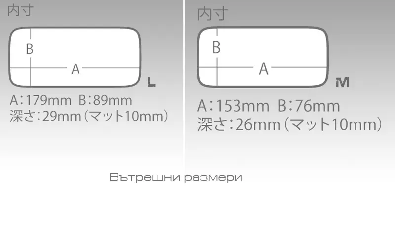 | Size | M – 161 x 91x 31 mm, L – 186 x 103 x 34 mm |