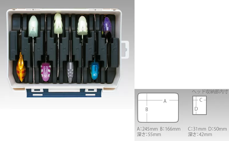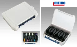 The jig head storage box is ideal for Tenya models in the range of 100-200 g or № 30 to № 50, but this depends on the shape and specification of the different manufacturers. It is also suitable for all other variants of heads that fit in the compartments for them with an internal size of 31 x 50 x 42 mm and if the total length with the hook does not exceed 166 mm. The robust lock is designed to be opened with one hand, and the body is made of quality and durable polypropylene, just like all Japanese Meiho boxes.