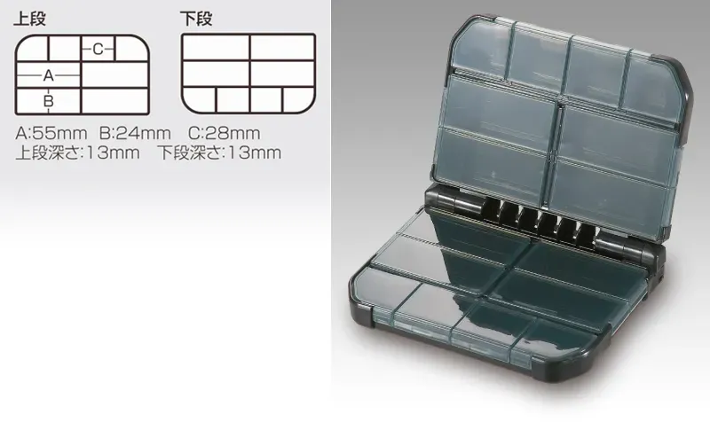 Easy to store, reliable in handling and durable in active use, the double-sided box unfolds with a slight effort, enough to avoid the danger of accidental opening. You can fit the Meiho Versus VS-388DD Folding Case almost anywhere so that it is close at hand at all times, and the stylish design with rounded corners, durable construction of shock-resistant copolymer and high quality will serve you long and faithfully. Fits perfectly on the top of suitcases VS-7070 and VS-7055, VW-2070, VW-2055, as well as inside the VS-3080 and VS-3078.