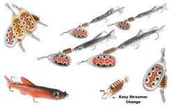 Excellent, especially effective fishing spoon for trout and pike, as well as perch, white fish and salmon, depending on the size you are throwing and the situation. The system with quick change of hooks and the fish allows the combination with a second spinner in tandem for even more vibrations, shine, weight and overcoming longer distances. Of course, it also allows for quick fish supplements at your discretion. For example, attaching real bait can get you fierce striker blows from asp the first time you spin the reel.