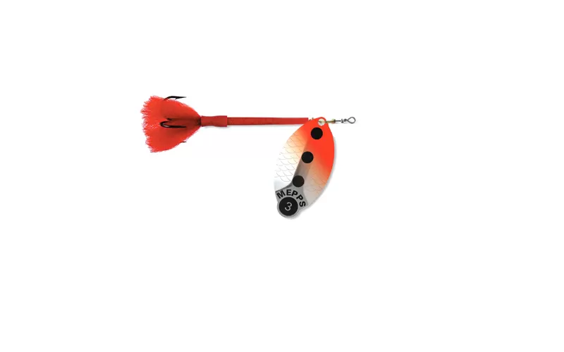 This spinner of Meps with a weighted front can be driven extremely slowly and still retain its wonderful vibrations. The spoon is so well balanced that even in free fall the leaf immediately starts to turn and very often in difficult fishing this is the way to make the predators attack. Used with a removable weight at the front end. Probably the best spoon on the market for pike fishing!