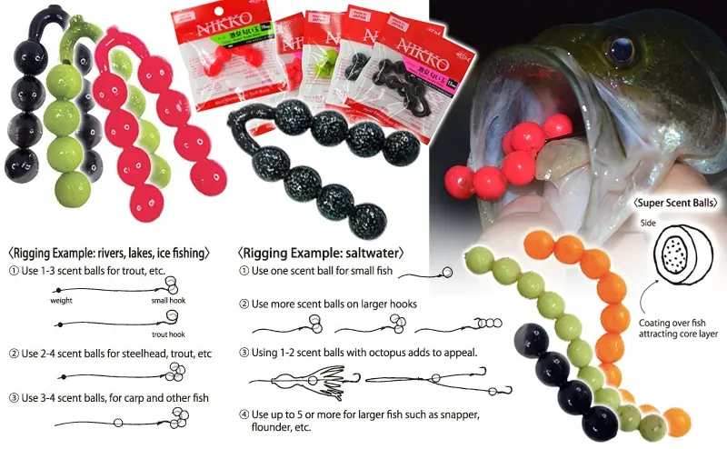 Nikko Dappy Super Scent Balls are used in a variety of ways by fans of all kinds of techniques, both freshwater and sea fishing. You can use one or several balls to make your lures more attractive, add them to river or ice fishing setups, diversify your rubber baits and jigs, to fix directly on the hook, closer to the jig or in the fringes of an octopus. However you attach the phenomenal Dappy Super Scent Ballsto your bait, the fish’s attention will be yours!