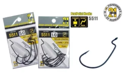 Powerful and strong offset hooks for trophy fish, whose wide curve plus large size makes it ideal for large and bulky silicones. The uncompromising Japanese construction of the Pontoon 21 from high-quality CoupWire stainless steel guarantees increased strength, as well as resistance to bending or breaking during combat. Whatever soft lure you use – from thin and long shadows to large and heavy twisters – 5511 ProtPoint Teflon Coated Forget Offset Hooks prevents silicone from sliding down the handle on the hook when casting or plucking.