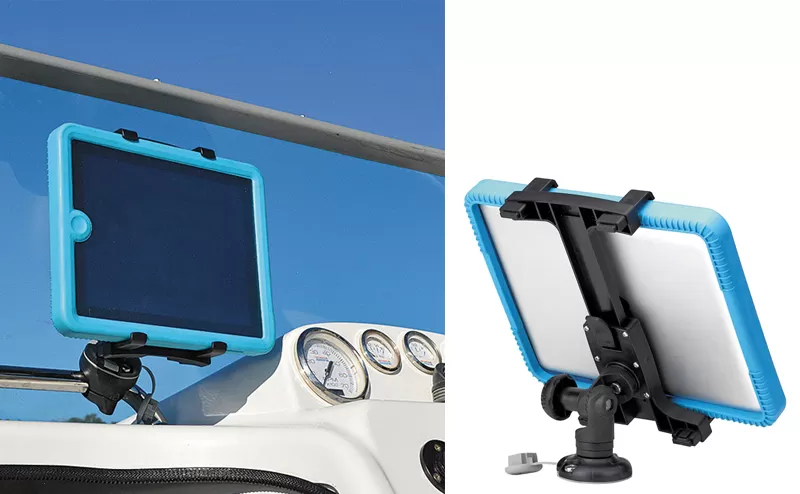 As its name suggests, the stand “grabs” any 7 to 10 inch screens and rotates in all directions, can tilt 90 degrees, the display can be fixed in the Portrait or Landscape positions, and the special grip feet are adjustable in depth and can capture almost anything like electronic screens on offer. on the market. With the Railblaza railing base you can place the screen in the most convenient place for you on the boat and adjust the position easily and safely.