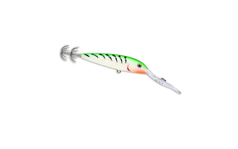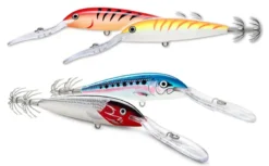 The large and strong blade makes the wobbler sink quickly to the working depth and maintain it without problem even at slow speed, as well as sneaking through algae, rocks and any a possible refuge for cuttlefish and squids. The premium double row stainless steel hooks are lined up for the furious strikes provoked by the realistic imitation of a dying fish and of course, the attractive colors specially selected for the deep-sea exploits Rapala Deep Squid Jig. You can also increase your chances of catching a circling fish by hooking a treble on the belly of the intended ring.