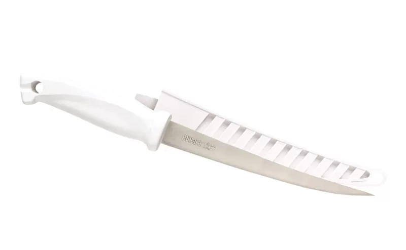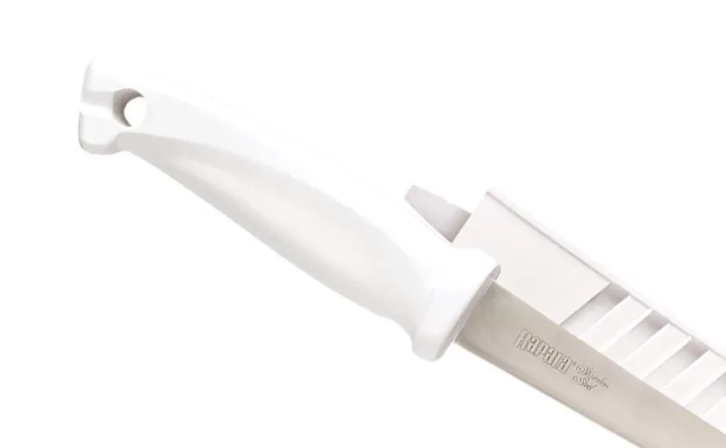 Fillet knife for sea fishing from Rapala, perfectly prepared for harsh conditions and active use. In addition to being extremely comfortable, the white ergonomic handle is highly resistant to heat and wear, and the stainless steel blade will not withstand corrosion and salt water for many years of serious operation.