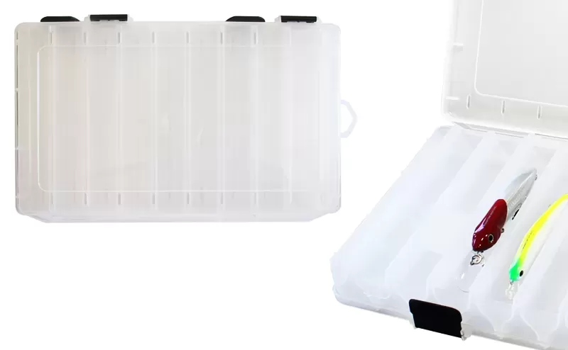 The double-sided XL box for wobblers with triangular compartments Plastilys is a great hit on the topic of maximum useful volume. An excellent option is to bring with you more baits in one box, which are protected, arranged and with perfect visibility through the transparent lids.