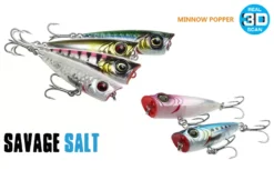 The amazing balance and elongated shape for more aerodynamics combine perfectly with the large concave front of the Savage Gear Minnow Popper, capable of unexpectedly attractive pop sounds and immodest splashing of water. Light and short tugs with a low position on the tip of the stick cause a noisier and more sonorous presence of micro pepper, and with a raised tip – more water splashes, turmoil and excitement around it. Super-sharp triplets for salty stretches are an excellent choice for the model, and made with 3D scanning relief and details plus huge, impactful eyes, they are especially attractive. The small and flexible surface lure for Micro Game fishing and entertainment is part of the Savage Salt series and has the same themed, high-quality and refined colors as the all marine models – as beautiful as they are temptingly realistic for the fish’s senses. Don’t worry about using it for freshwater fishing too! This little one is able to make perch and mullet views, and striker or pike strikes are not excluded at all!