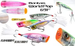 Glare from the large reflector plate against the body of the popper is the biggest trump card here, but it only enhances the classy craftsmanship, attractive colors and mouth-watering show of the Bantam World Pop 69F. Attractive even in the pauses with the incessant flashing of the Flash Boost plate, Shimano‘s surface wobbler is capable of provoking attacks much closer to you than usual, so you have to be alert until the last moment! Pops, water splashes and bubble trails are a specialty of the cup mouth, and in this model they are more than good and maddening for predators.