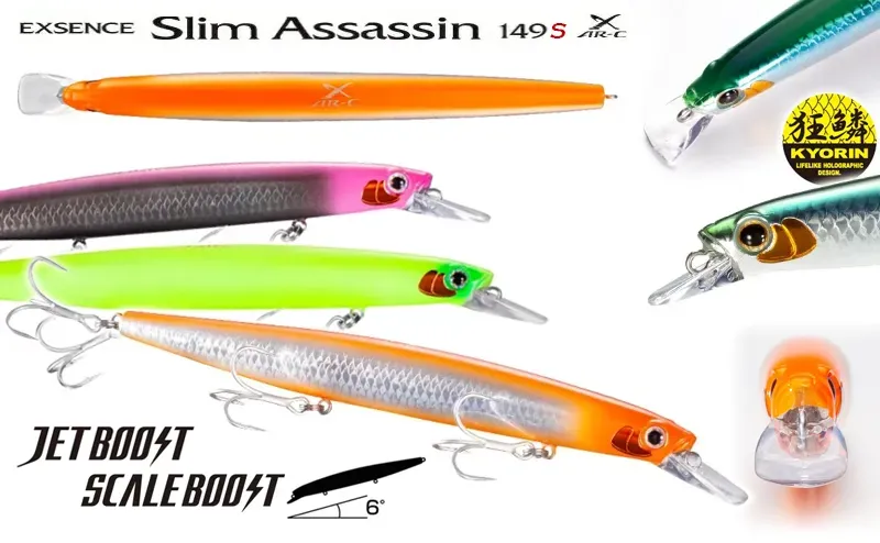In addition to the XAR-C and ARC-Shell developments that guarantee flight stability and position maintenance while swimming, Shimano Exsence SLIM Assassin 149 Sinking also features Jet Boost and Scale Boost technologies. Jet Boost further ensures long casting distances, stability and quick start of the action after hitting the water, and Scale Boost hologram creates a complex reflection that precisely and realistically imitates scales reminiscent of the real bait in the sea.