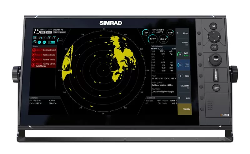 Simrad HALO24 Radar 48 NM supports multiple modes in which full 360-degree swing every second provides ultra-fast update of the picture at a distance of 1.5 NM and almost real for the rest of the range, and Pulse Compression radar technology does not compromise on target detection in any range of the range, while the beam sharpness ensures improved separation of small from large targets. Simrad R3016 Radar Control Unit screen is compatible with a wide range of radars via Ethernet connection, and NMEA 0183 and NMEA 2000 ports provide connection to additional direction and speed sensors, with AIS transmitters and GPS receivers, as well as a targeting sensor to use all possible functions, including MARPA Target tracking.