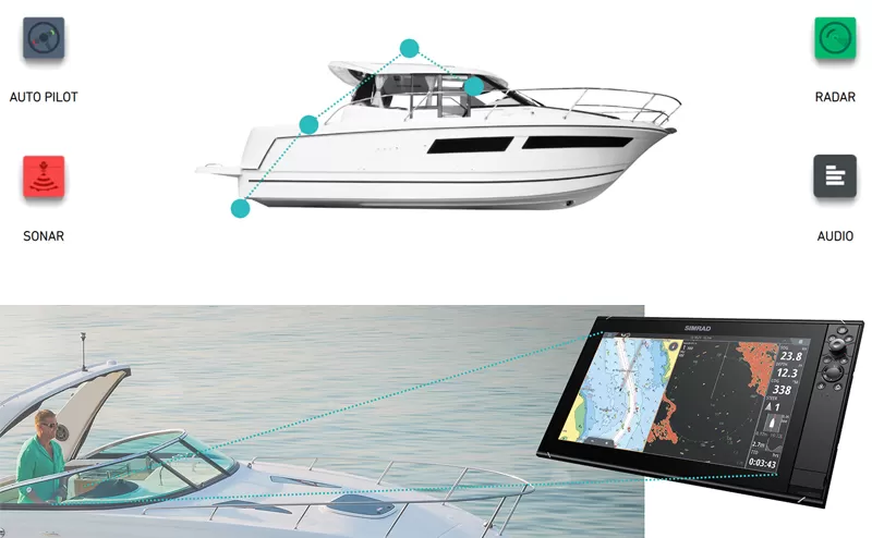 NSS evo3S sonar supports Active Imaging, ForwardScan and StructureScan 3D probes, dual-channel CHIRP converters, compatible with S5100 module and HALO radars , so it’s no problem to take advantage of first-class picture with bottom relief and fish movement, three-dimensional view of the structures around the boat, radar overlay or trust autopilot firmware. There are dozens of options, even more with TripIntel technology for travel planning and automatic routing, options for wireless connection with smartphones and tablets, access to other compatible devices, and a connection to internet areas via Simrad App.