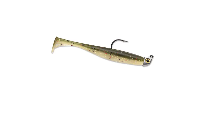 The thin and fine body is made of high quality and durable material, in the mixture of which no phthalates are used. Most of the colors of Storm 360GT Coastal Mangrove Minnow have added brocade for maximum visibility, as well as an attractive color bright tail. You can count on silicone for new feats in both freshwater and coastal sea fishing, in a variety of situations and for longing for many favorite predators such as grouper, synegrida, fagri, snook, tarpon. Supplied as a set of one jig head with VMC Coastal Black hook plus four silicones.