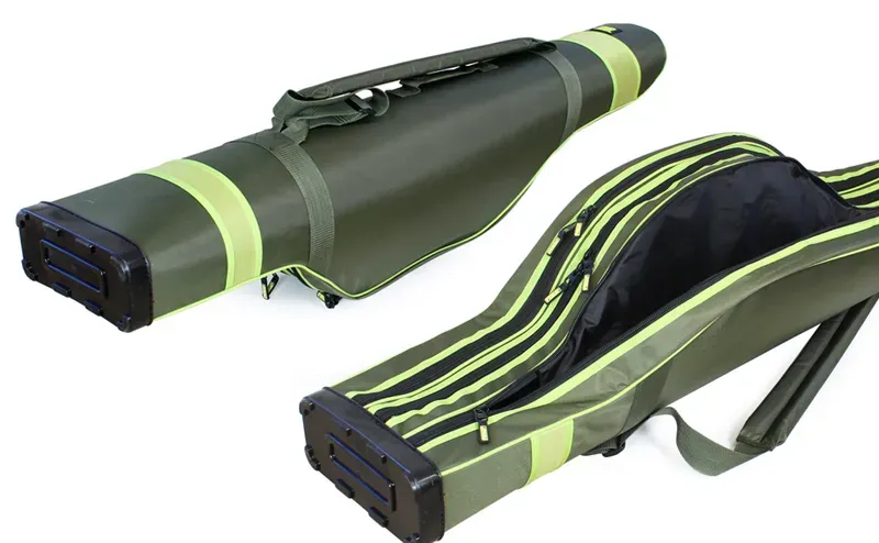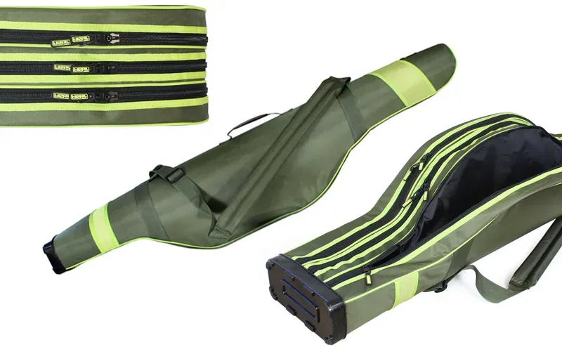 The combination of a hard inner insert, padded dividers inside, a solid hard bottom and durable outer material is an excellent option if you are looking for such an accessory. The PVC base on the bottom measures 25 x 11 cm and the shoulder strap is adjustable and combined with a short handle for hand carrying. The three-compartment hard case is suitable for fishing rods and telecarp models, the transport length of which is up to 1.4 meters.