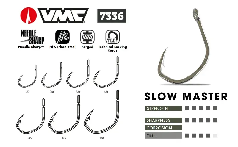 Special offer from VMCfor fans of Big Game and Jigging fishing – reliable and frighteningly sharp slow jigging single hooks and live bait fishing! The needle sharp tip of the 7336 Slow Master is synonymous with quick and easy penetration plus long-lasting sharpness.