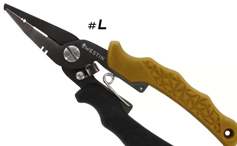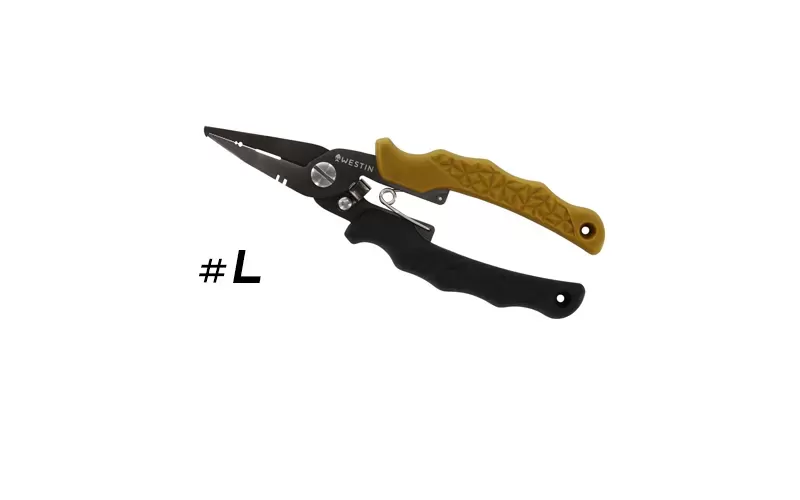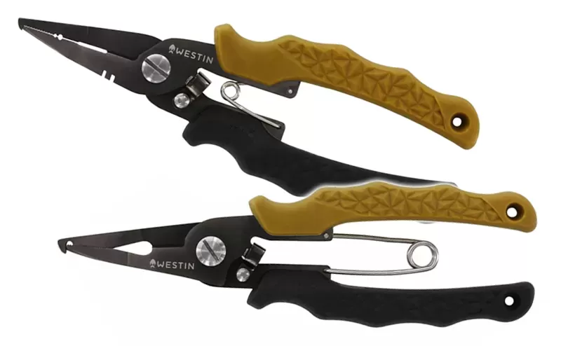 The common denominator between the two models is the stylish and high-quality stainless steel construction with corrosion-resistant titanium coating plus the softened ergonomic handles in black and the sandy tone characteristic of the brand. Both variants – L and XL, have a tip designed to open rings and replace hooks, as well as a serrated cutter for fluorocarbon, knitted and monofilament lines. Smaller pliers Westin HD Split Ring Pliers have crimp options and slots for adjusting wobblers.