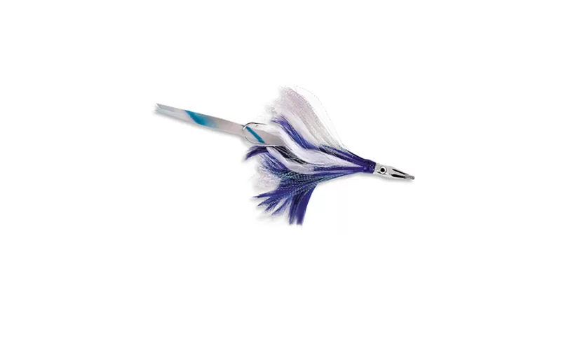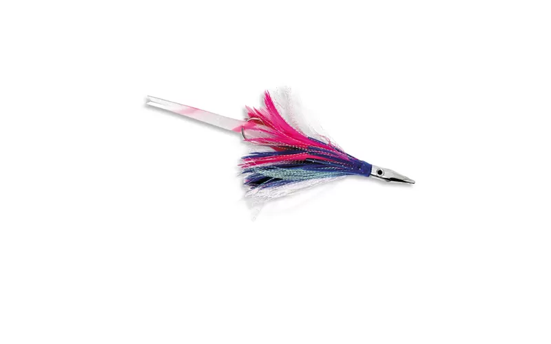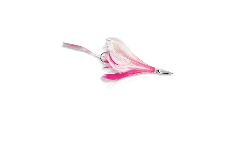 The interesting thing in this model is the special head with hydro holes and sound strip, hidden in the tail feathers of the skirt. The idea is that during the movement the water passes through the special holes in the head and is directed to a specific place on the sound bar, which makes it flicker and emit so valuable sounds underwater that drive crazy tuna.