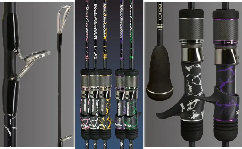Xesta Slow Emotion for Short Pitch Jerk B5104 is intended for delicate work with jig weight in the range 180-400 grams, such as 250 grams is the optimal weight. The rod is designed to naturally emphasize jerk movements from the angler’s hand with an initial slight bend and subsequent quick straightening, ideal for medium depths. All models are equipped with guides with SIC-S stainless steel rings, KW guides in the base and KT guides for the top section. Rods with a lower power class have a PLS rod holder, and those in Power Class 3 and 4, such as the B5104, are equipped with a T-DPS20 reel holders with a high degree of freedom in the wrist. The design of the handle is synonymous with lightness and comfort, with an easy change of grip, depending on the situation, and the style is very specific and distinctive!